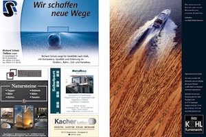 Unsere Broschüren stellen auch ein effektives Medium für Werbung aller Art dar. Die Unternehmen in Ihrer Region kommen durch clever designte Anzeigen zur Geltung und können so Bürgern und Gästen demonstrieren, welche Dienste sie anbieten.